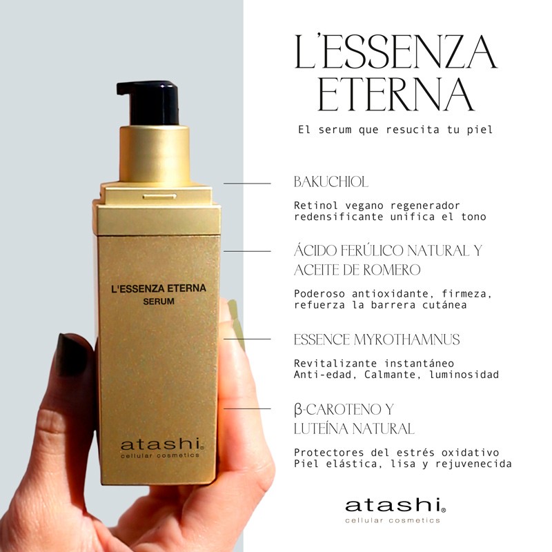 L´Essenza Eterna fortalece y protege mediante potentes antioxidantes que actúan como escudo protector frente a agresores externos como la luz azul, ondas WiFi y la contaminación ambiental, que favorecen el envejecimiento prematuro.