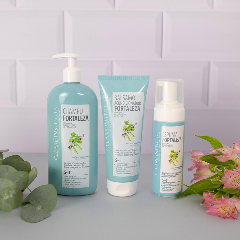 En Clearé Institute hemos desarrollado un tratamiento fortaleza-anticaída compuesto por un champú, un bálsamo acondicionador y una espuma para lucir un cabello fuerte y brillante. El tratamiento está diseñado para frenar la caída del cabello hasta en un 85%, redensificarlo en un 56% y estimular su crecimiento.