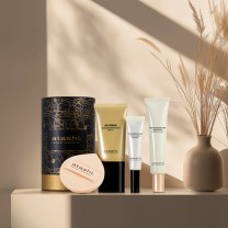 El Extracto tecnológico de Gardenia Jasminoide incrementa la producción de colágeno y restaura la matriz celular. La perla negra, rica en minerales marinos, realza la sensualidad de la piel, unifica el tono y atenúa imperfecciones.