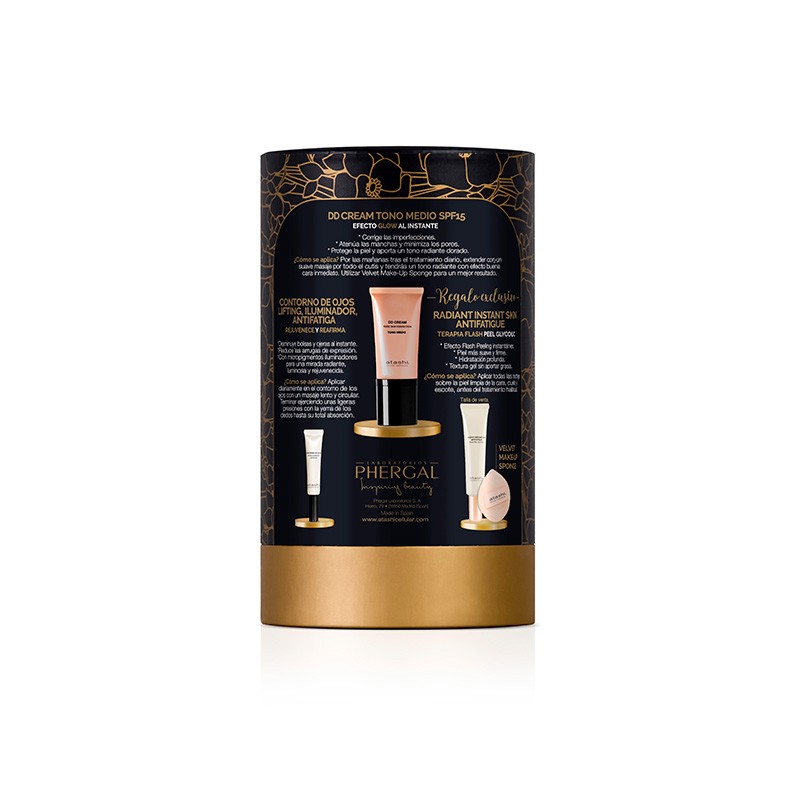 Por las mañanas tras el tratamiento diario, extender con un suave masaje por todo el cutis y tendrás un tono radiante con efecto buena cara inmediato.