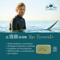 El gel de ducha sólido Uso Frecuente de Dr Tree limpia, calma, hidrata y protege, generando una espuma, suave, cremosa y delicada. El gel es un concentrado cremoso, no conglomerado. Formulado con Aceite de Jojoba BIO, Aceite de Abisinia y Aroma Fresco Limonada. Refuerza el microbioma e incluye un aroma 100% de origen natural y vegano.