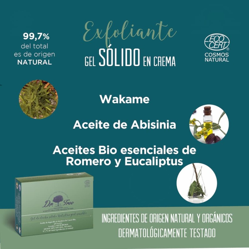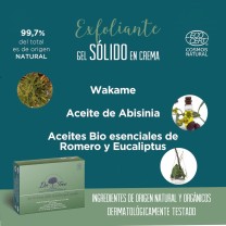 Gel de ducha sólido exfoliante ¿Cómo se usa?. Mezcla la pastilla con agua y genera espuma. Es suave, cremosa y delicada. Masajear por todo el cuerpo. Crea una emulsión suave muy sensorial, que limpia y calma la piel. Aroma de origen natural. Se enjuaga fácilmente.