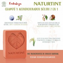 El Champú sólido Fortaleza de Naturtint está formulado con un 99% de ingredientes de origen natural para cabellos débiles, sin densidad o con problemas de caída.