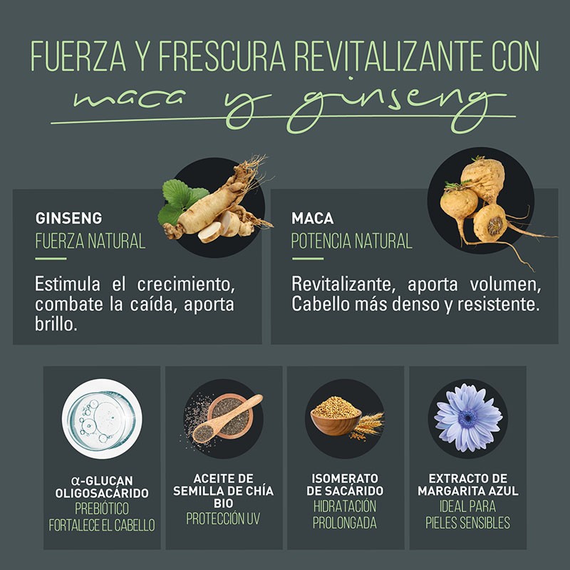 - 99% de ingredientes naturales, entre los que destacan el Ginseng y la Maca.