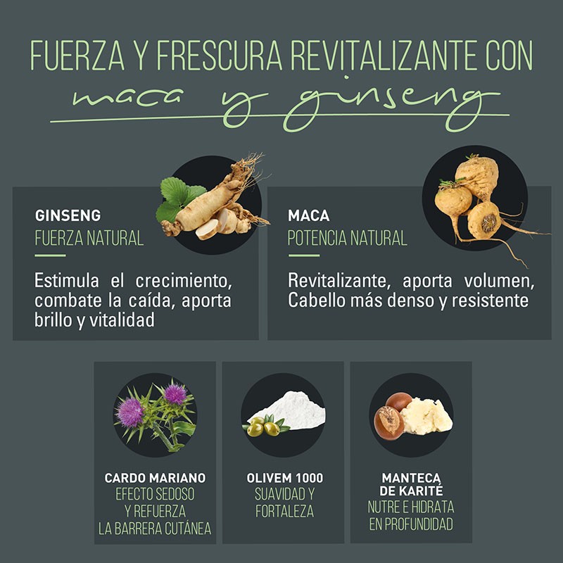 Acondicionador especialmente formulado para el hombre para un cabello y una barba equilibrados y fáciles de manejar. Formulado con un 98% de ingredientes naturales, aporta suavidad y brillo gracias a su fórmula enriquecida con extractos de ginseng y maca, que aumentan el volumen.