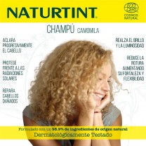 El Champú de Camomila de Naturtint está formulado con un 98´9% de ingredientes de origen natural. Su exclusiva combinación de extractos botánicos BIO aclara progresivamente el cabello aportando intensos reflejos dorados, realzando el brillo y la luminosidad. Además, lo protege frente al sol y reduce la rotura, aumentando su fortaleza y flexibilidad.