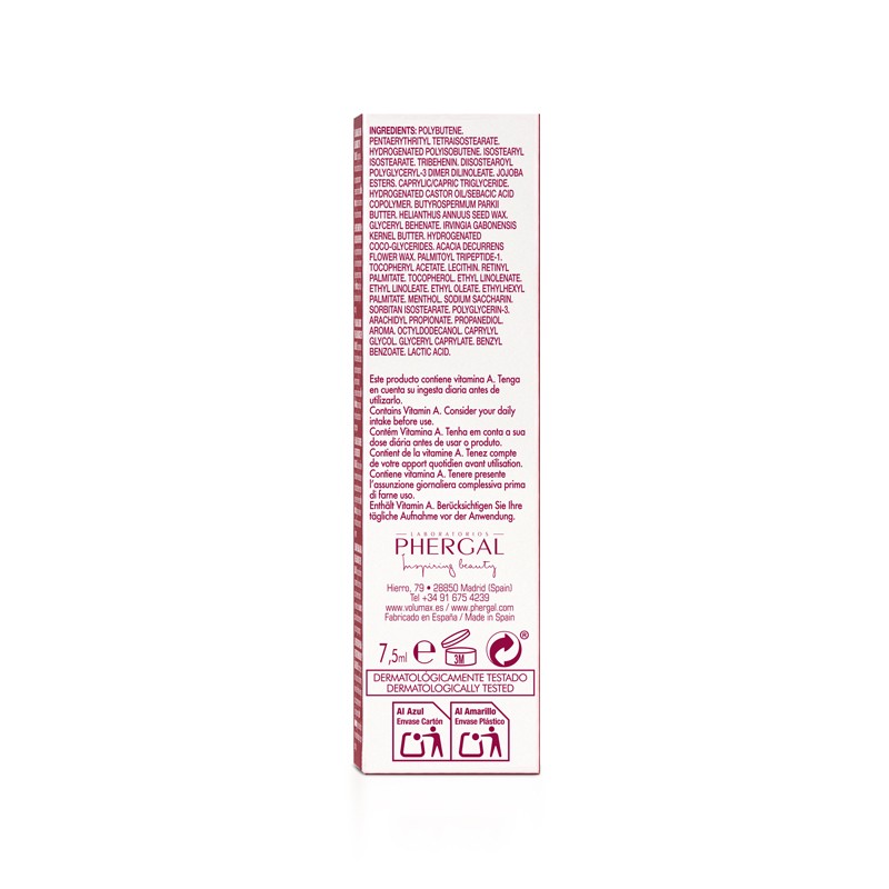 - Aporta volumen: gracias al exclusivo Pal-GHK, que estimula la producción de colágeno y del ácido hialurónico, los labios logran incrementar su volumen natural y se notan más suaves, jugosos y carnosos.