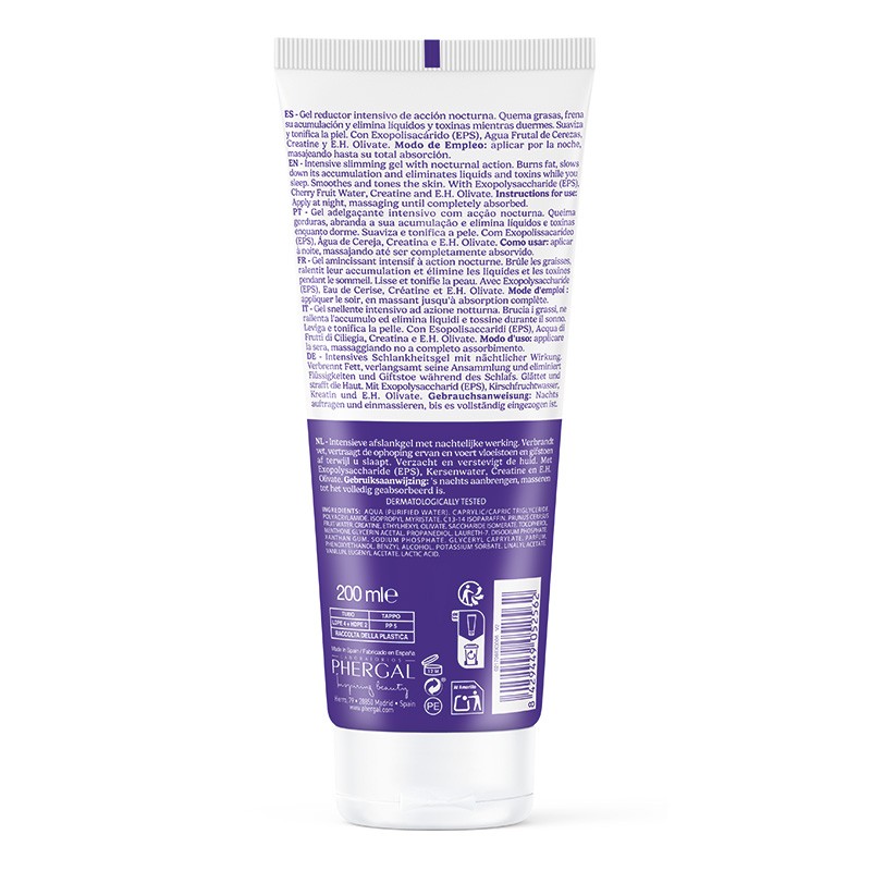 Gel con efecto lipo-reductor de acción nocturna ultra rápido, Actúa de forma específica sobre las proteínas que regulan la formación y acumulación de grasas. Tu cuerpo se estiliza a la vez que tu piel se vuelve más suave, firme y tonificada. Máxima eficacia mientras duermes.